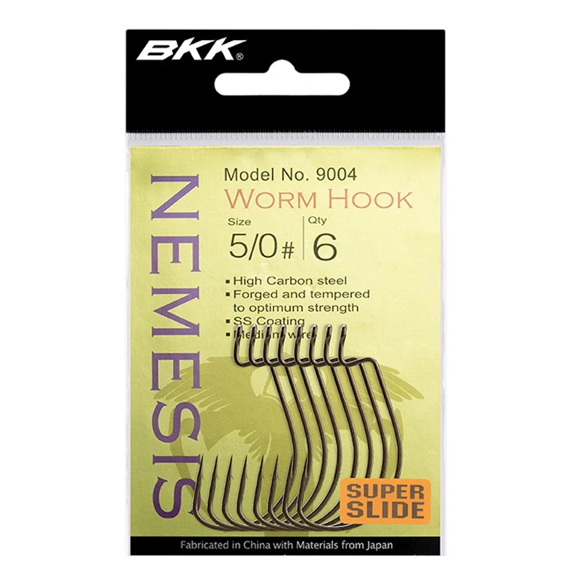 The BKK Nemesis is designed to Texas rig bulkier profile soft plastic baits such as flukes and swimbaits.For such purpose, the hook has an extra wide gap design that makes sure there is enough room between the shank and the point to ease the hook set.Besides, the hook has a medium-light gauge that is specifically chosen to fit medium and light-weight lines.BKK’s needle sharp hook point and Super Slide coating provide an enhanced penetration performance by reducing the piercing resistance, thereby increasing the hook up ratio.Extra wide gapeOffset hooksMedium-light gaugeNeedle sharp hook pointsSuper Slide-coatingPieces per pack:(8-pack) – #1/0(7-pack) – #2/0(7-pack) – #3/0(7-pack) – #4/0(6-pack) – #5/0
