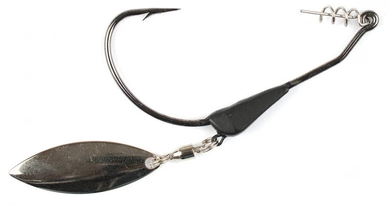 Offsethook mit Schraube, Weidenblatt und Tungstengewicht. Eine hervorragende Art der Montage für Barsch und Hecht mit einer Weidenklinge als zusätzliche Attraktion. Funktioniert auch für Forellen und Regenbogen.