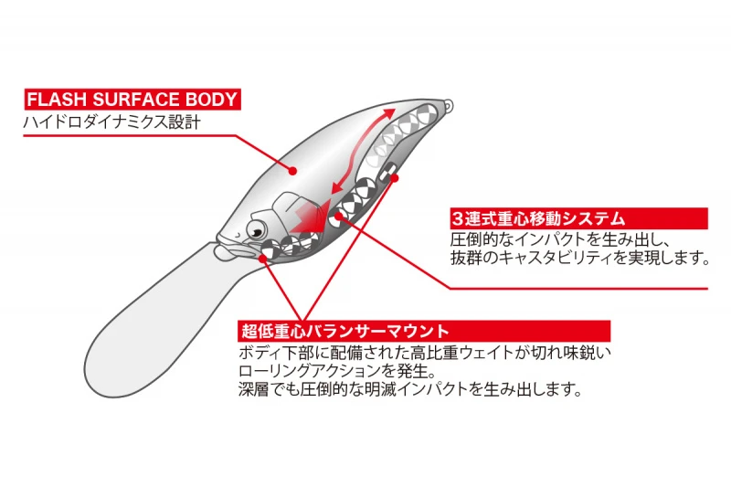 Die Big M 7.5 ist eine super tiefe Kurbel, die auf dem Konzept der Big M-Serie basiert: ein flacher Körper mit einem niedrigen Schwerpunkt. Wie der Name schon andeutet, kann diese beeindruckende Kurbel die weltweit tiefste Reichweite von über 7,5 m bei einem normalen Rückzug erreichen. Er ist eine der Krönungen der Crankbait-Entwicklung, an der Megabass seit langem arbeitet. Es ist bemerkenswert, dass der schwere Zugwiderstand, der der größte Nachteil herkömmlicher großer Crankbaits war, gründlich reduziert wurde, um ein stressfreies, leichtes und komfortables Gefühl zu erreichen, selbst wenn man ihn den ganzen Tag lang einrollt. Das einzigartige hydrodynamische Design von Megabass schafft einen rationellen großen Tiefseeköder, der eine Tiefe von 7,5 m erreichen kann, indem er mit dem richtigen Wasserdruck an Tiefe gewinnt und das Gefühl des Widerstands beseitigt, indem er den unerwünschten Wasserdruck absorbiert.Der niedrige Gewichtsschwerpunkt, der in dem großen, flachen Seitenkörper verpackt ist, der der Big M-Serie gemeinsam ist, und die scharfe Rollbewegung, die einen überwältigenden, flimmernden Aufprall um ihn herum erzeugt, treffen direkt auf große Mutterfische, die in der Tiefe wandern.In einer Welt, in der Köder in einer Tiefe von knapp über 7 Metern rar sind, werden nur wenige Barsche, die diesem realistischen Köder begegnen, ihn ignorieren können. Der Körper des Big M7.5 ist schmaler und spitzer als der des Big M4.0, um den Wasserwiderstand zu verringern. Das Innengewicht hat jedoch den gleichen Durchmesser wie das des Big M 4.0 mit einem dreifachen Schwerpunktverschiebungssystem mit hohem spezifischem Gewicht, um eine überwältigende Wurfleistung zu erreichen, die durch den Wind schneidet. Die erstaunliche Big Crank, die durch die vereinten Bemühungen des Teufelsschulmeisters vom Biwa-See, Shinji Sato, Yuki Ito, und des Entwicklungsteams der neuen Generation geschaffen wurde, markiert eine neue Seite in der Geschichte.